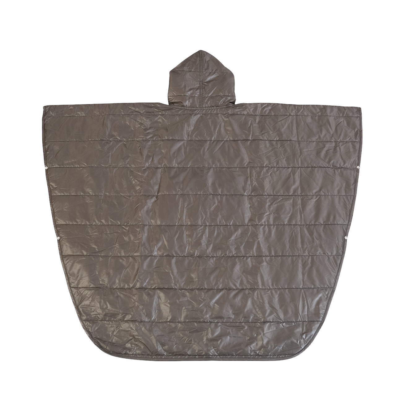 使用済みPETボトルを回収・再生利用し、地球環境を考えた “再生繊維♦エコハチ(ユニエコロ®)とユニチカで技術開発された特殊耐久撥水加工ダイヤリップ(マクマード®︎)の生地を贅沢にキルティング加工したポンチョです。