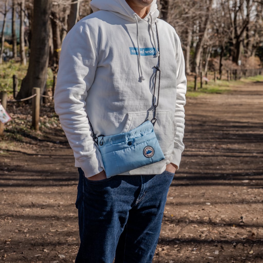 爽やかなライトブルーのカラーが魅力のサコッシュです!軽量でありながらしっかりとした作りが特徴で、デイリーユースからアウトドアまで幅広く活躍します。シンプルなデザインは、どんなスタイルとも合わせやすく、あなたの個性を引き立ててくれるアイテムです。