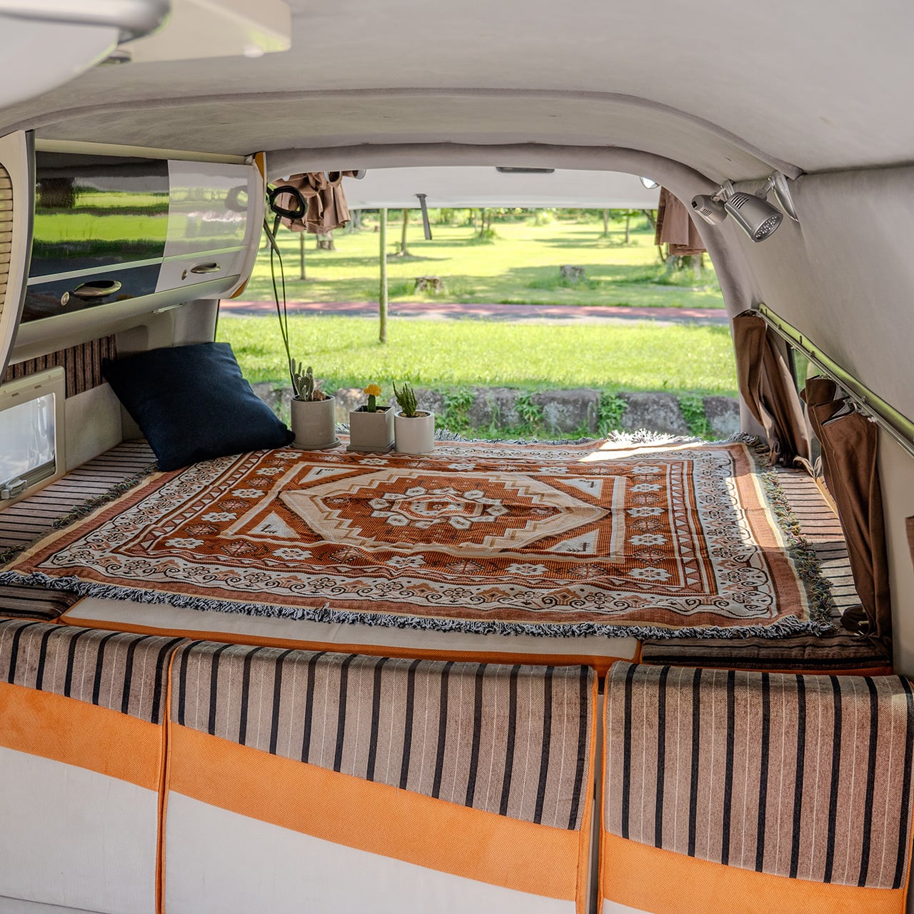 **心地よさとスタイルを兼ね備えたキャンプマット(レンガ)**  ボヘミアン風のデザインが魅力的なキャンプマットが、新たなアウトドア体験をお届けします。バンライフやキャンプと言ったアウトドアシーンだけでなく、インテリアとしても洗練された雰囲気を演出できます。おしゃれでユニークなデザインは、どんなシーンでも目を引くことでしょう。  このキャンプマットは、軽量で持ち運びも簡単なので、テントや車の中へもスムーズに収納できます。また、ご自宅のリビングやベランダに敷いて、リラックスしたひとときを楽しむことも可能です。  スタイリッシュなボヘミアン風デザインは、キャンプ場やおしゃれなカフェでのピクニックシーンにぴったり。自分だけの特別な空間を演出して、素敵な時間をお過ごしください。自然を大切にしつつ、心地よい空間を提供します。