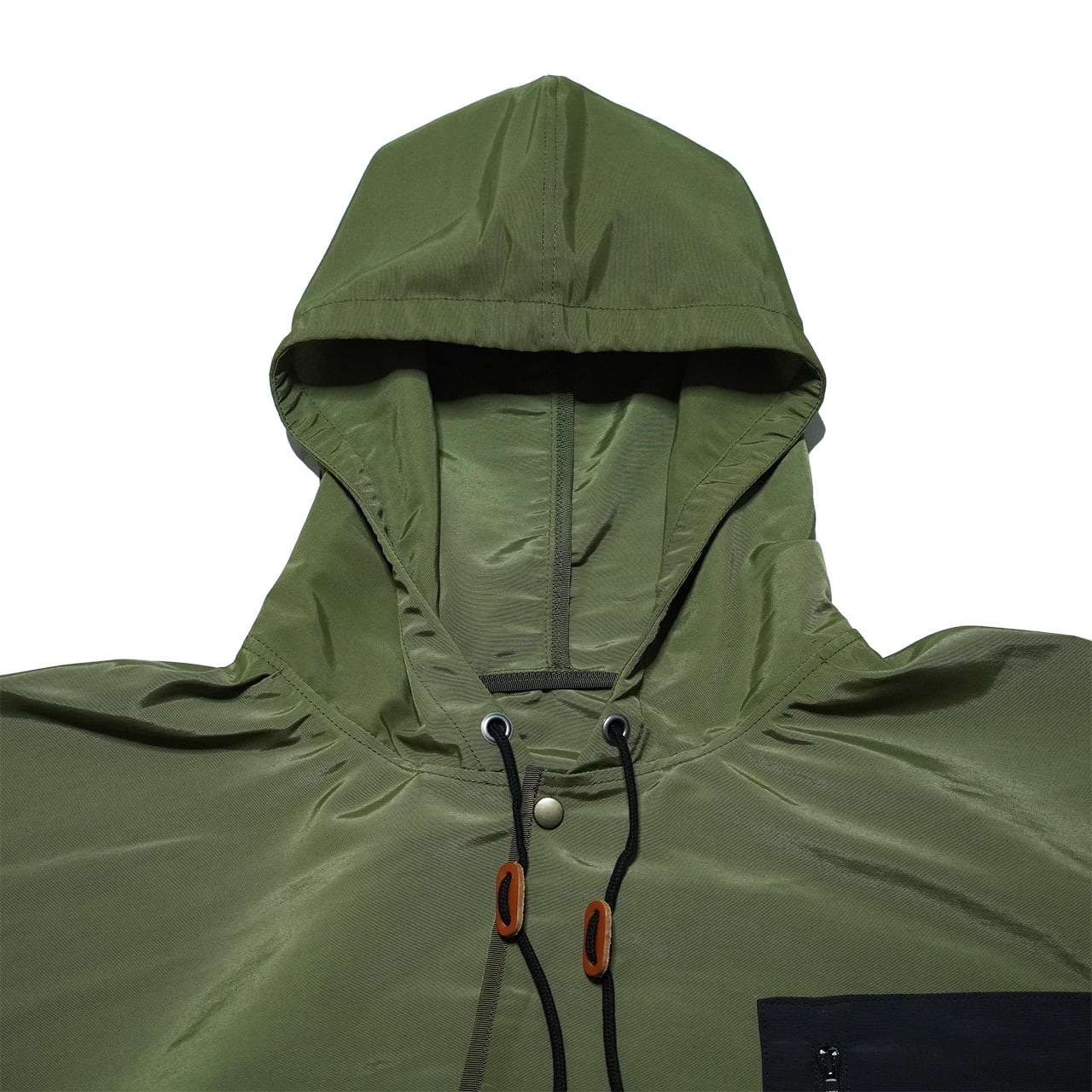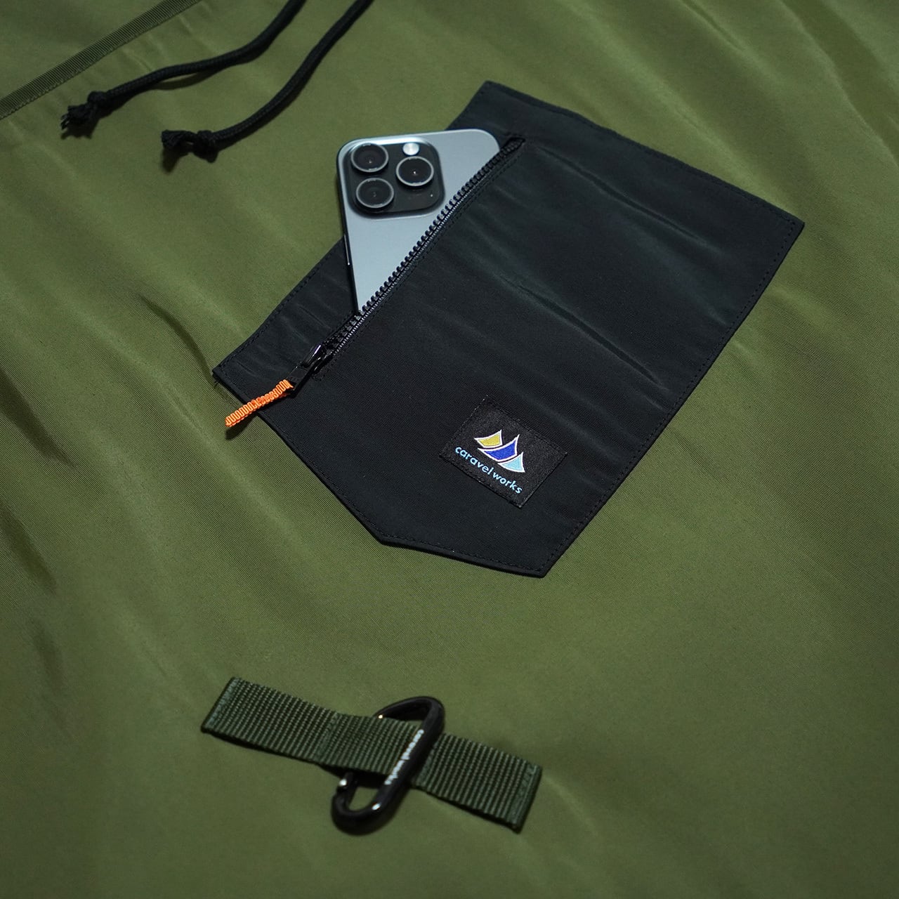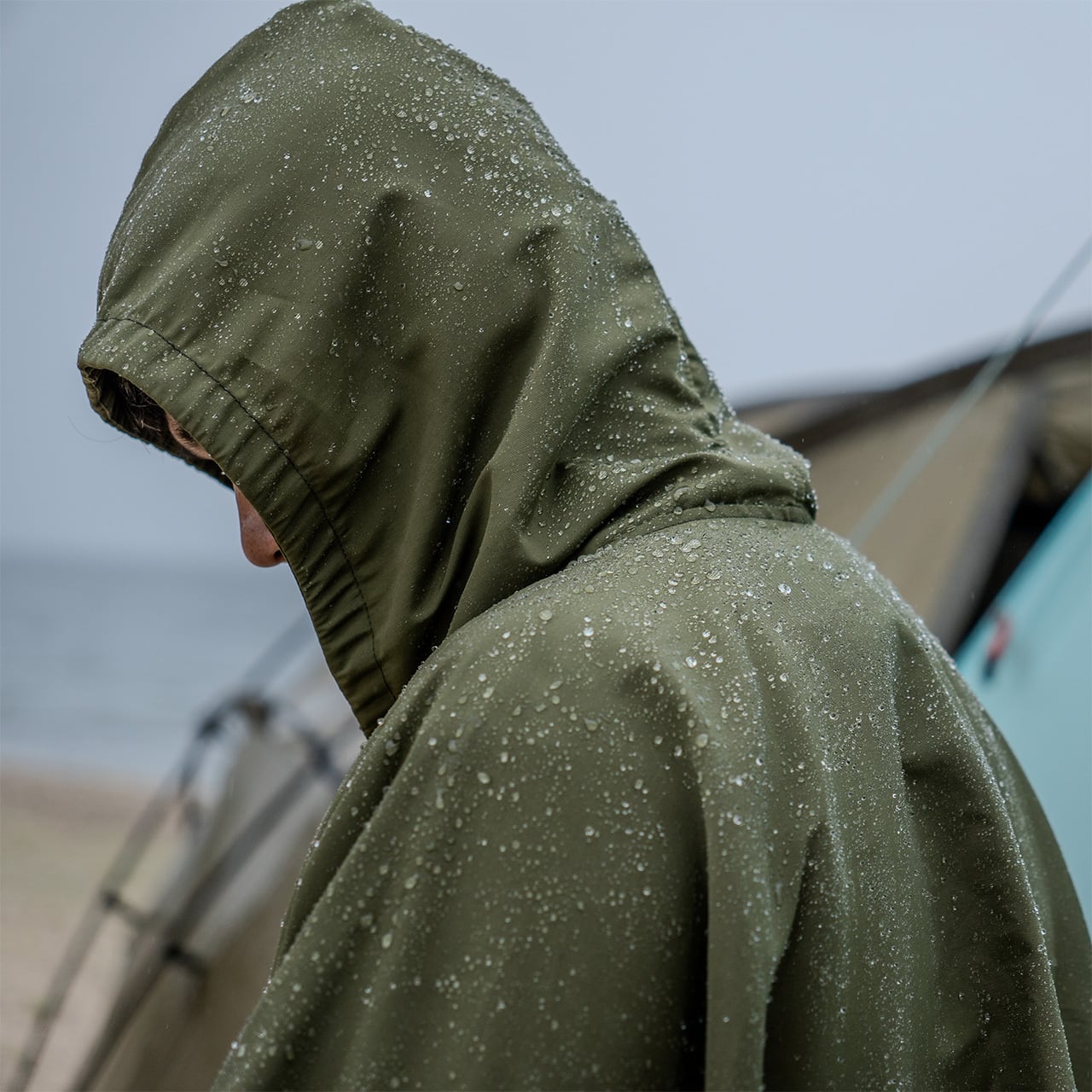 焚き火ポンチョは、アウトドアでの焚き火をより快適に楽しむために生まれました。撥水性と難燃性に優れたアクリル系合成繊維の生地で作られたこのポンチョは、火の粉や急な雨、湿気から身を守り、素材自体が難燃性を保有している為、繰り返し洗濯しても高い難燃性能を維持します。また軽量でありながらも耐久性に優れ、羽織るスタイルなので厚手のトップスの上からでも、薄手のトップスの上からでもストレスない着心地でオールシーズンを通して重宝します。
